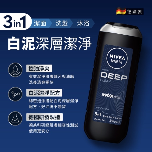 #NIVEA #妮維雅沐浴露 #男士沐浴露 #德國男士專業保養品牌 #專為男士設計 #徹底清潔 #溫和潔淨 #有效保濕 #持久清新