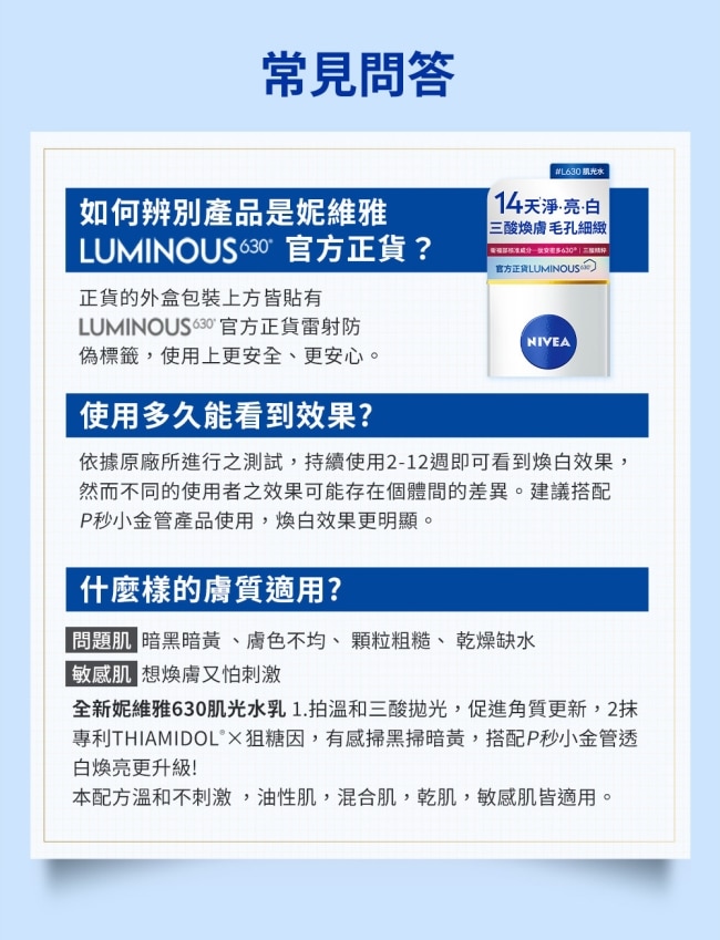 妮維雅LUMINOUS630肌光透白修護精華乳100ml