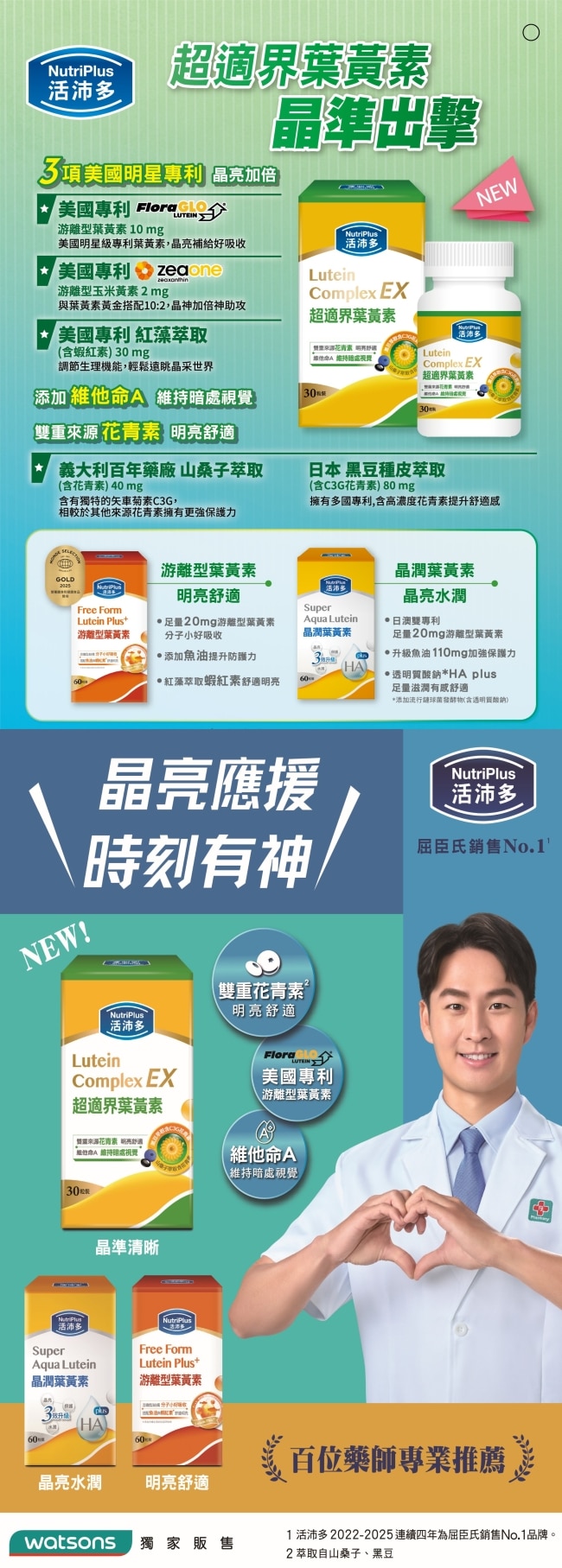 -10:2黃金比例之葉黃素:玉米黃素原料來自國際知名大廠授權具藍光專利專利游離型態吸收率更好提升17%補充葉黃素的首選
