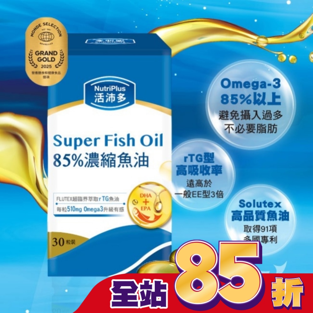 商品名稱: 活沛多 85%濃縮魚油軟膠囊 30粒