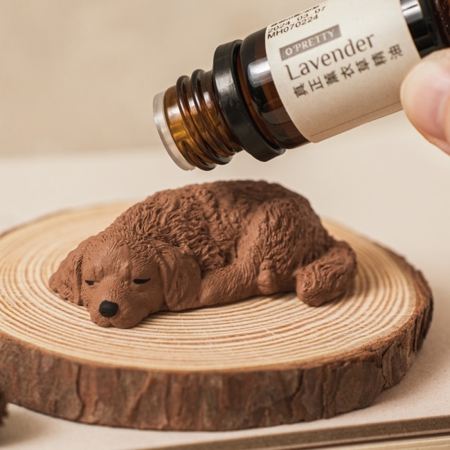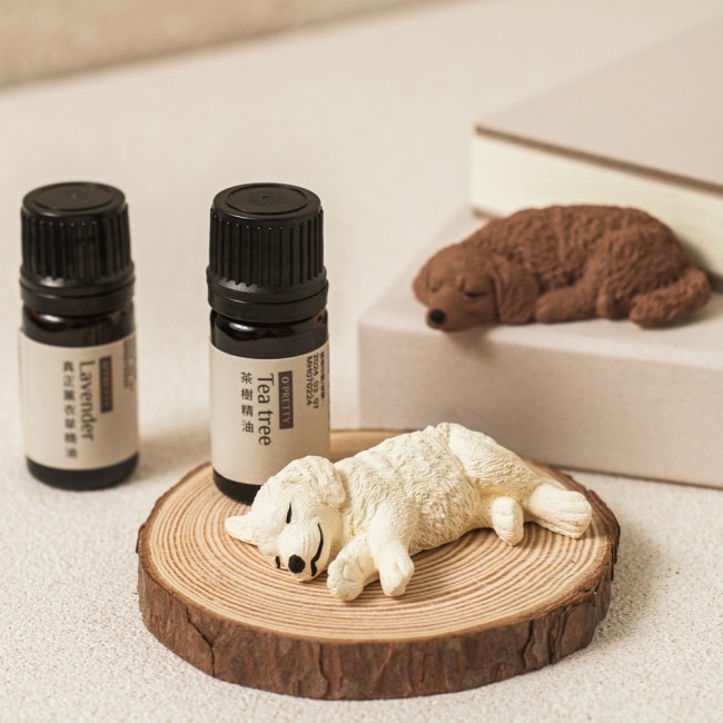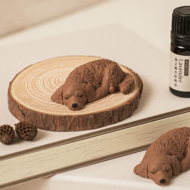 中文品名O’Pretty 歐沛媞 室內/車用 香氛擴香黃金獵犬擴香石擺飾-淺棕/白色+茶樹草本精油(5ml)