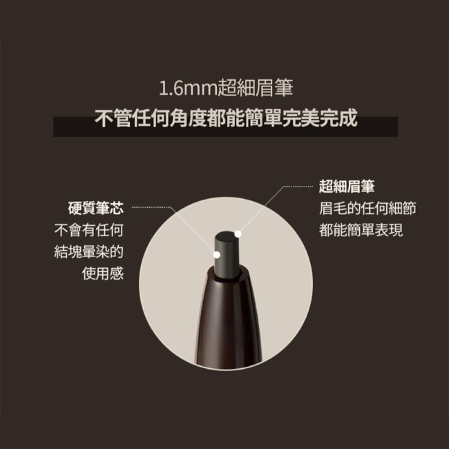 Step 4 打開下端筆蓋,使用附帶眉刷梳理眉毛,呈現自然眉紋效果。