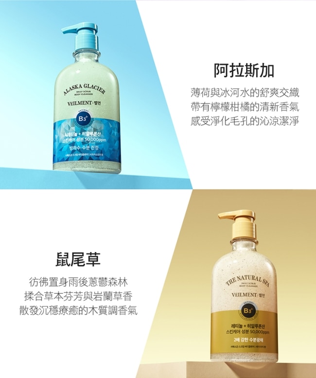 死海鹽及杏桃果核微粒等磨砂成分,可天天使用,在自家沐浴即可做身體保養,細緻肌膚。