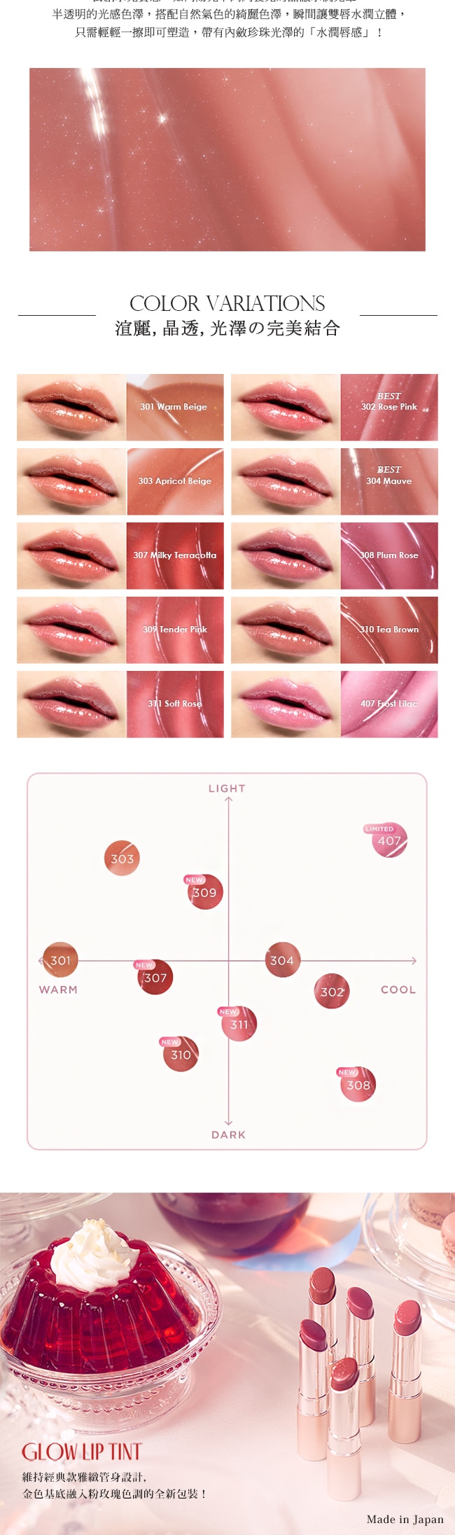 獨特Tint配方能與唇部本身的水分融合 , 經過唇溫及時間轉化 , 持續散發不同層次感的綺麗色澤 , 打造自然明亮的絕美氣色。
