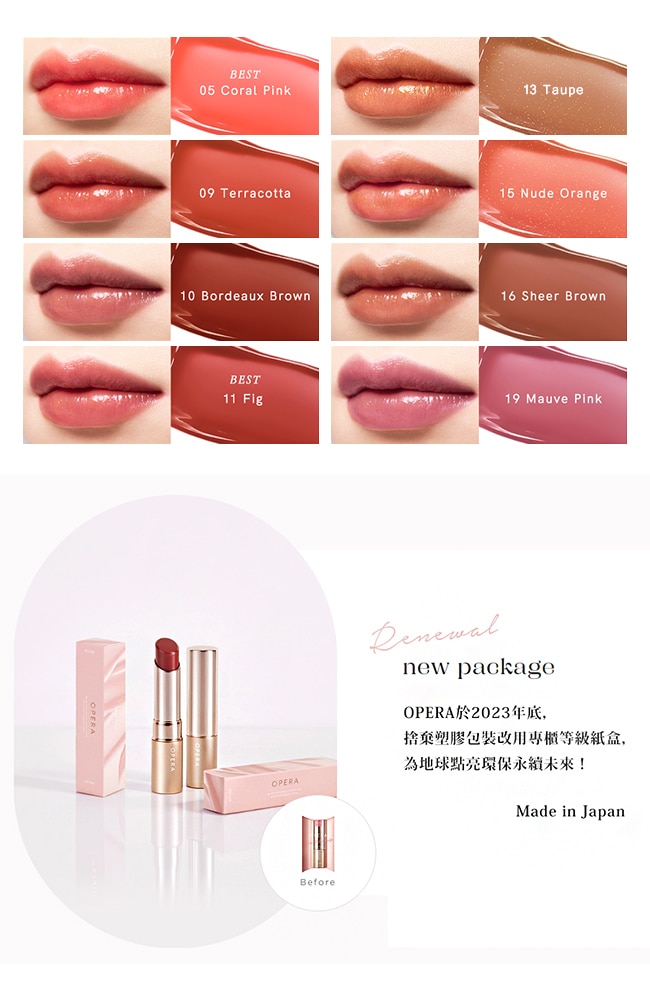 | 使用方法 | 將唇膏自管子轉出塗抹至雙唇上。 可根據個人唇色喜愛偏好及顯色深淺調整唇膏塗抹的程度。 唇膏質地非常柔軟使用時請轉出5mm即可請勿用力壓迫唇膏。 一般的眼唇卸妝品就能輕鬆卸除、無香料。 |