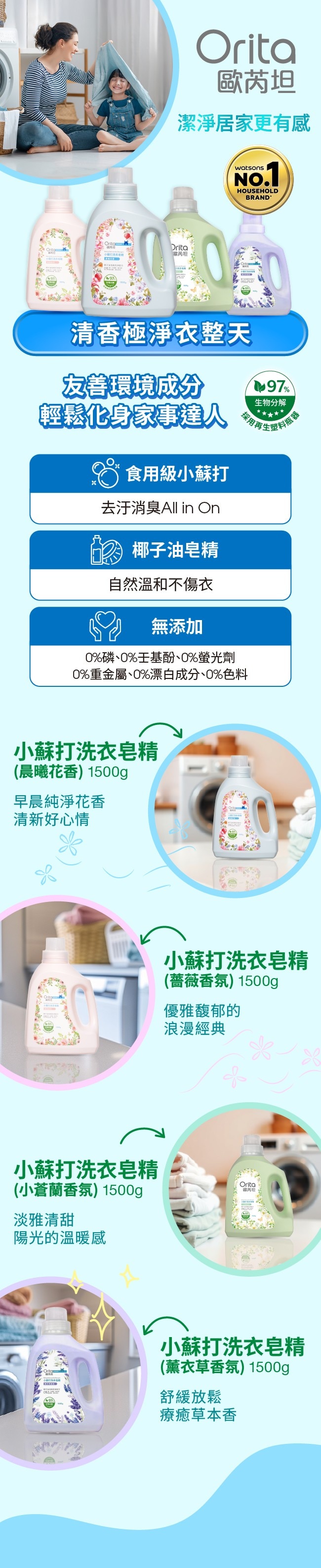 | 商品簡述 | 歐芮坦小蘇打洗衣皂精1500g |