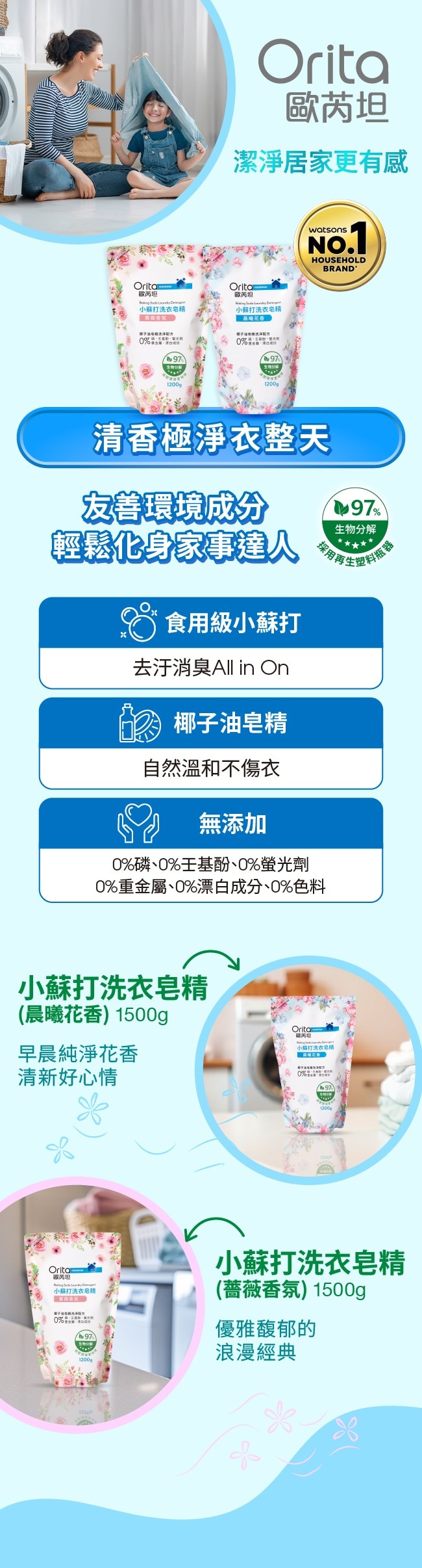 | 商品簡述 | 歐芮坦小蘇打洗衣皂精補充包(薔薇香氛)1200g-8入 |