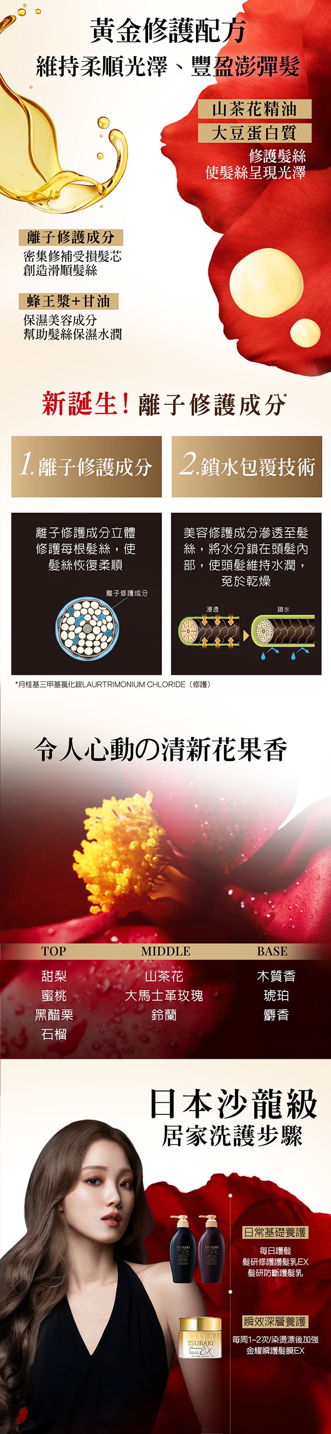 山茶花精油x離子修護成分x鎖水包覆科技