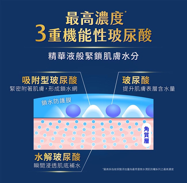 最高濃度* 3重玻尿酸 精華液般緊鎖肌膚水分
