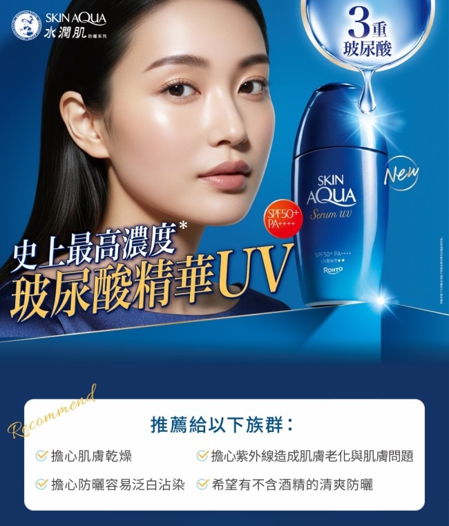 商品簡述最高濃度3重玻尿酸防曬同時幫肌膚補水