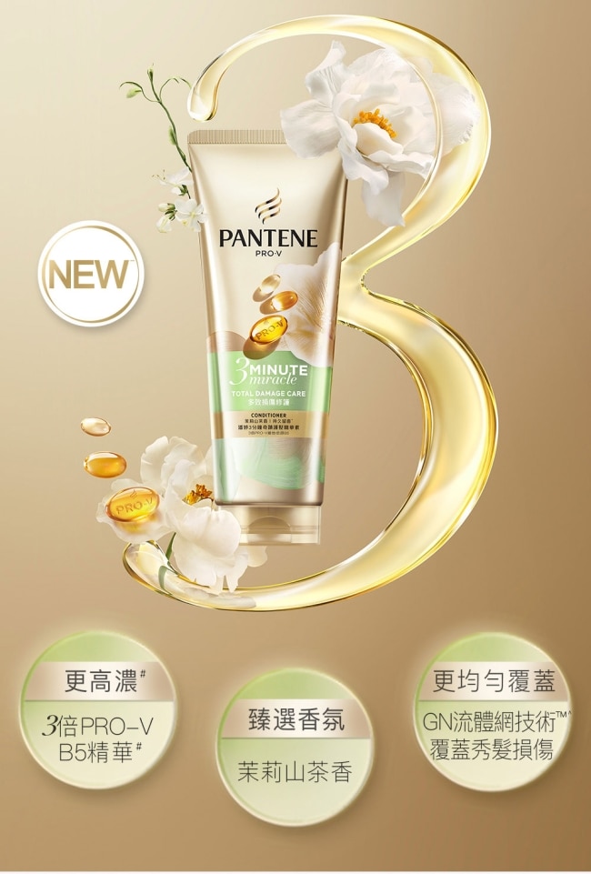 潘婷3 MINUTE MIRACLE茉莉山茶多效修護護髮精華180ml