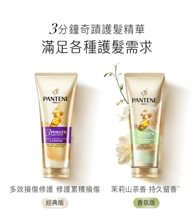 | 商品簡述 | 潘婷 3 MINUTE MIRACLE茉莉山茶多效修護護髮精華180ml |