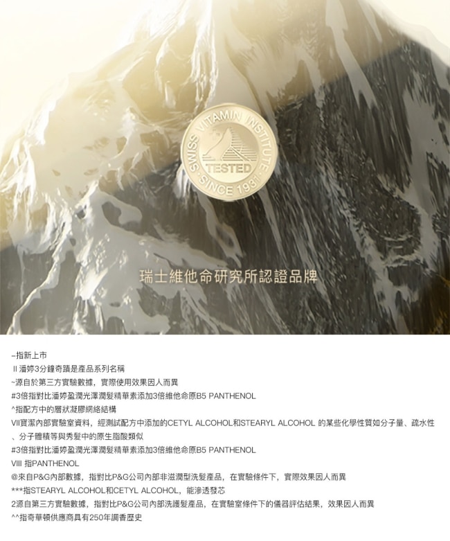 源自瑞士的修護傳奇0潘婷秉承秀髮美學專研理念 匠 心 研 發 PRO-V 配 方含 三 重 研 選 精 華: