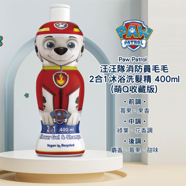 Paw Patrol 汪汪隊消防員毛毛2合1沐浴洗髮精 400ml(萌Q收藏版)