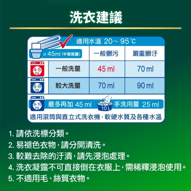 4.洗衣凝露不可直接倒在衣物上需稀釋浸泡使用