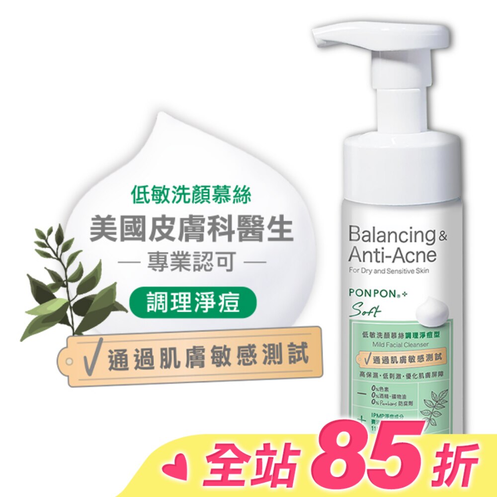 PONPON Soft低敏洗顏慕絲 調理淨痘型-150g