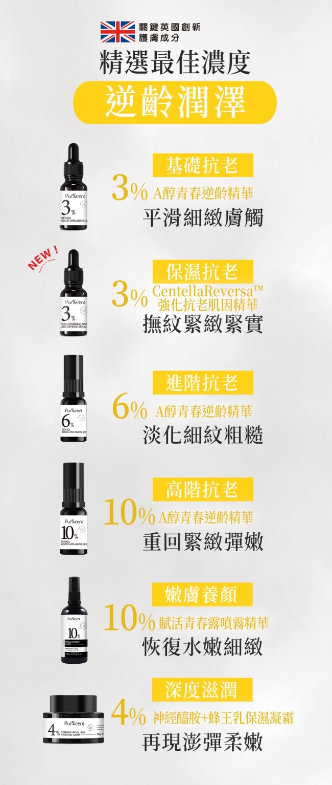 | 商品簡述 | 專為全方位抗老需求所打造嚴選添加韓國雙專利-植泌能量Centella Reversa |