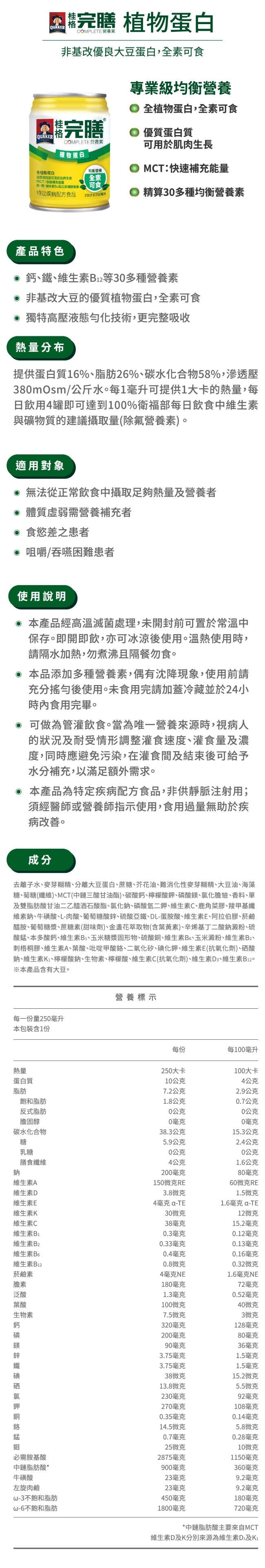 本產品為特定疾病配方食品,非供靜脈注射用,亦不適合一般人食用請依照醫師或營養師指示使用,食用過量無助於疾病改善。