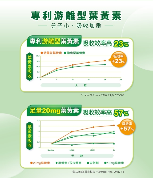 2. 晶亮黃金比例51每份葉黃素20mg與玉米黃素4mg,符合美國國家級機構建議比例