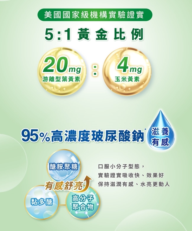 | 商品簡述 | 玻尿酸+葉黃素,潤護雙效 |