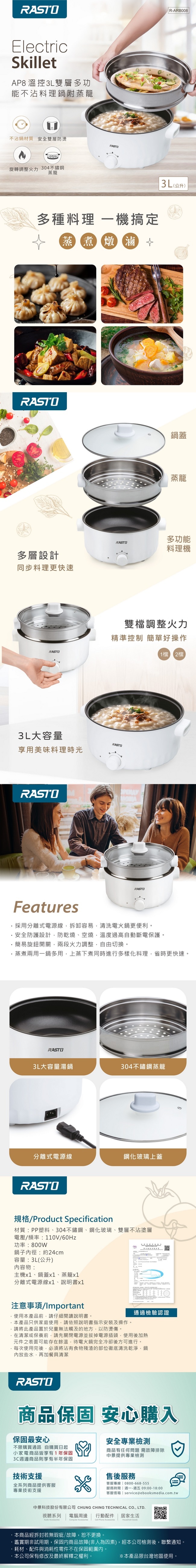 RASTO AP8 溫控3L雙層多功能不沾料理鍋附蒸籠