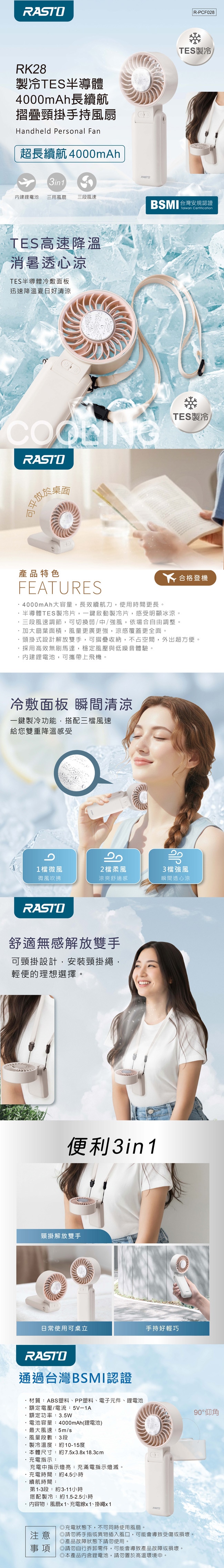 RASTO RK28 製冷TES半導體4000mAh長續航摺疊頸掛手持風扇