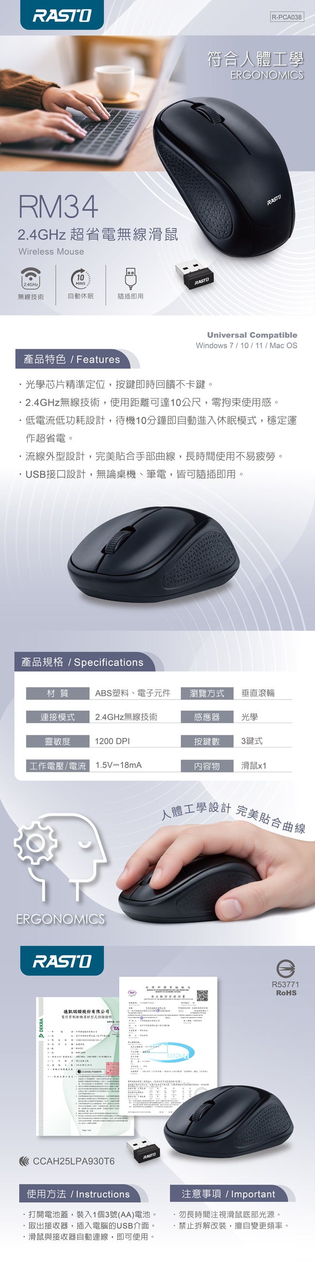 RASTO RM34 2.4GHz超省電無線滑鼠