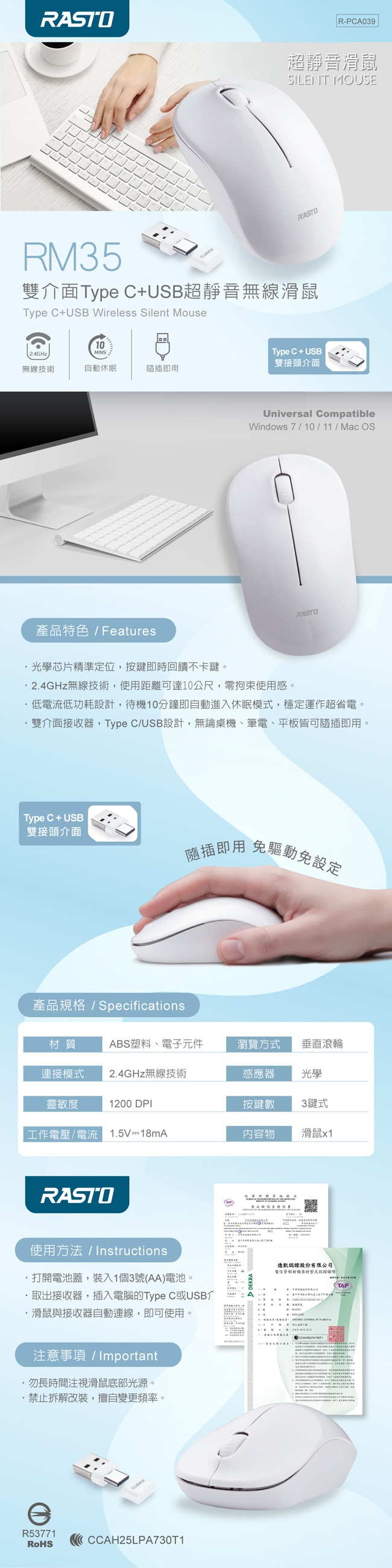 RASTO RM35 雙介面Type C +USB超靜音無線滑鼠