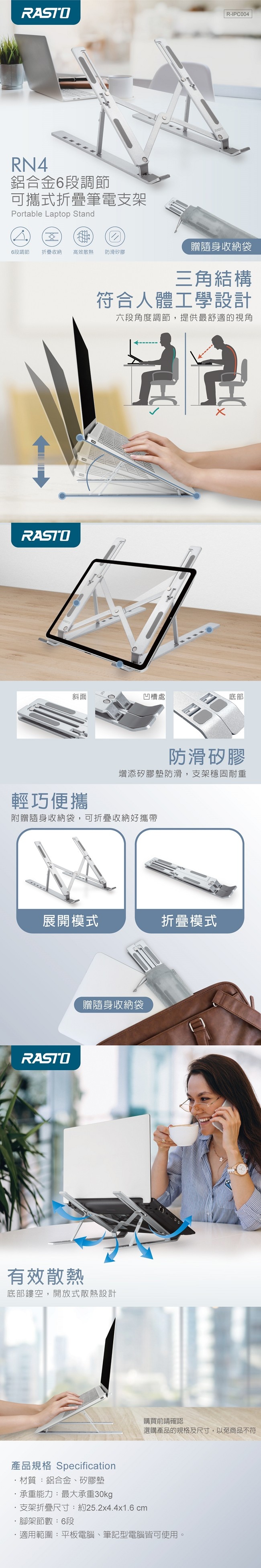RASTO RN4 鋁合金6段調節可攜式折疊筆電支架