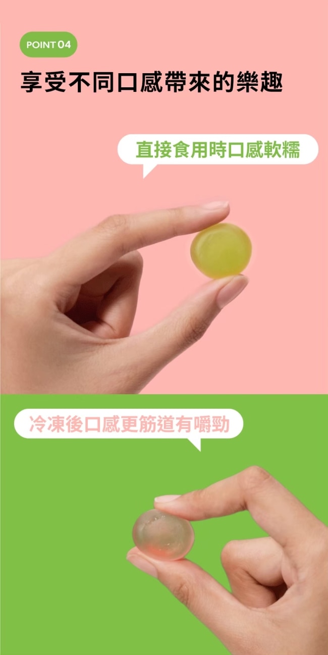 不論是學齡兒童、青少年、成年人或樂齡長者都能輕鬆食用。Q彈口感與酸甜風味讓補充益生菌成為每天期待的美味時刻。