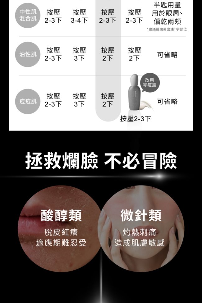 步驟一:按壓取適量修護凝萃於掌心 (可視不同膚質狀況調整用量)。