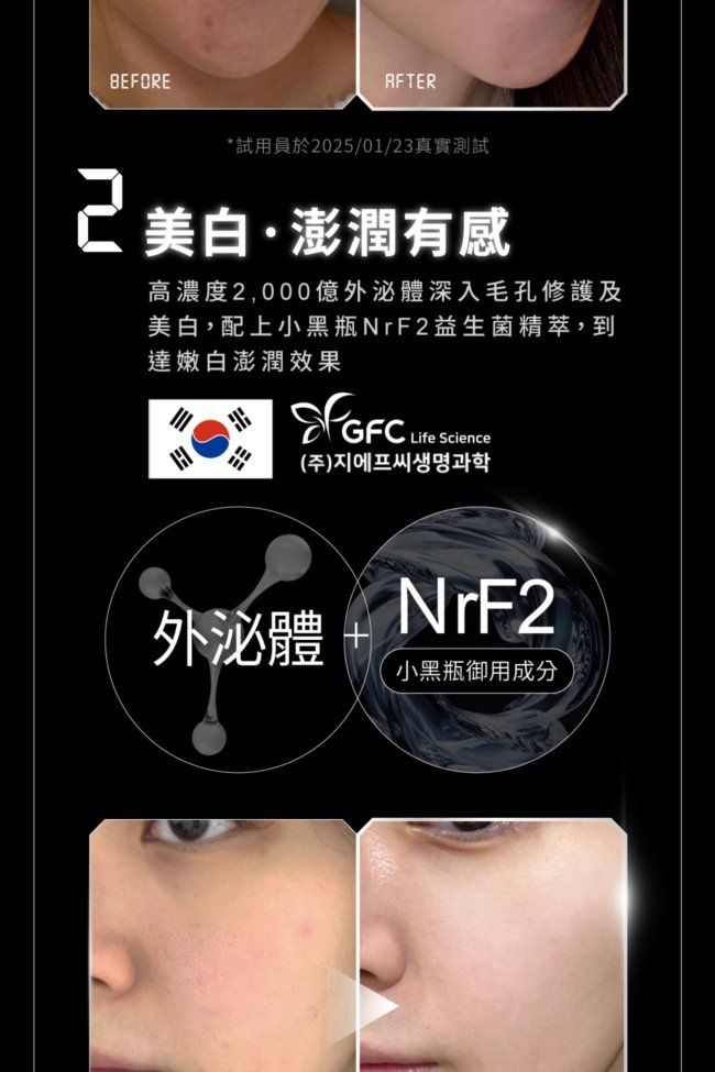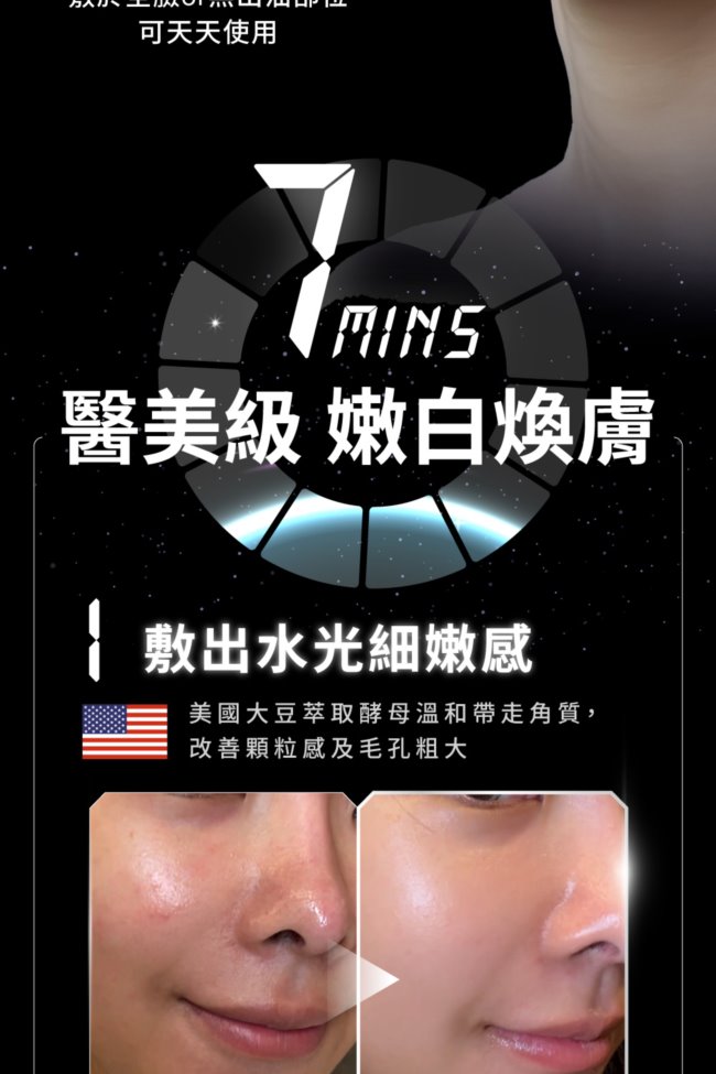 | 商品簡述 | 超足量外泌體7分鐘淨透白 進化型泌膜分區保養 效果加乘 美白泌膜 歐洲專利穀物萃取美白成分 |