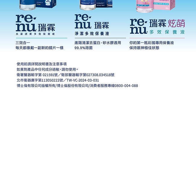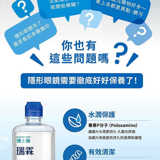 | 商品簡述 | 清除軟性隱形眼鏡上的髒點、蛋白質、汙垢及沉澱物。適用於配鏡前的潤洗、儲存及重新潤濕鏡片。 |