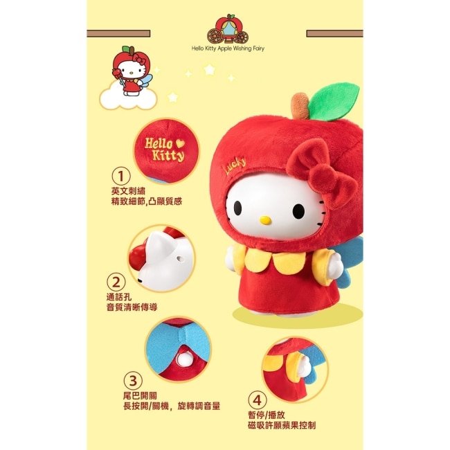 無論是放在辦公桌陪伴日常工作,或是置於床邊享受音樂時光,它都能為您的房間增添一抹幸福感。加上吸睛的俏皮外型,讓您在享受動人音質的同時,也能時刻感受 Hello Kitty 的無限魅力。現在就讓這隻蘋果精靈,為您的每一天播放美好旋律