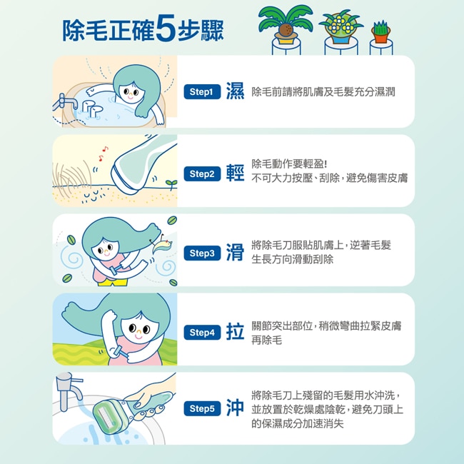 只要沾水濕潤即可享受除毛、保濕、潤膚一次完成的舒適體驗