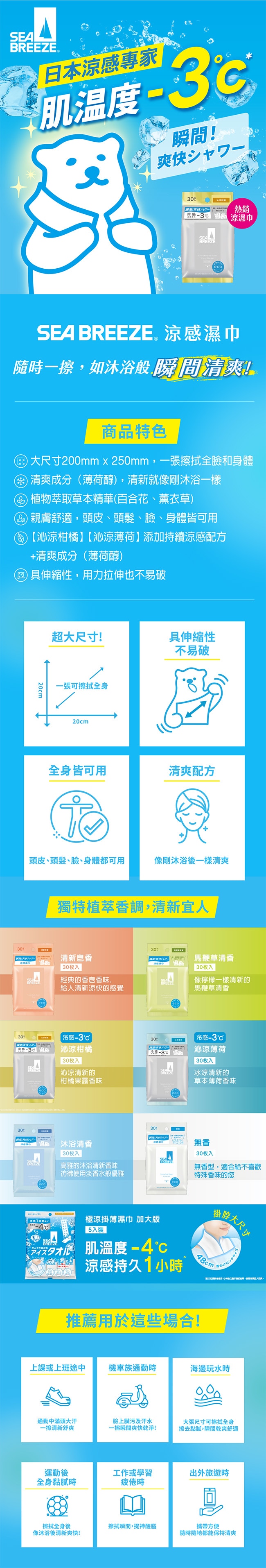 清新涼感 擦除汗水、油脂及髒汙 超大尺寸設計 臉、身體皆可用