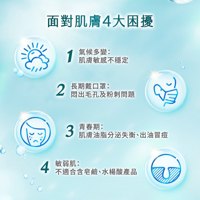 針對因氣候變化、口罩不離身而造成的肌膚出油、冒痘問題而推出的潔顏凝露