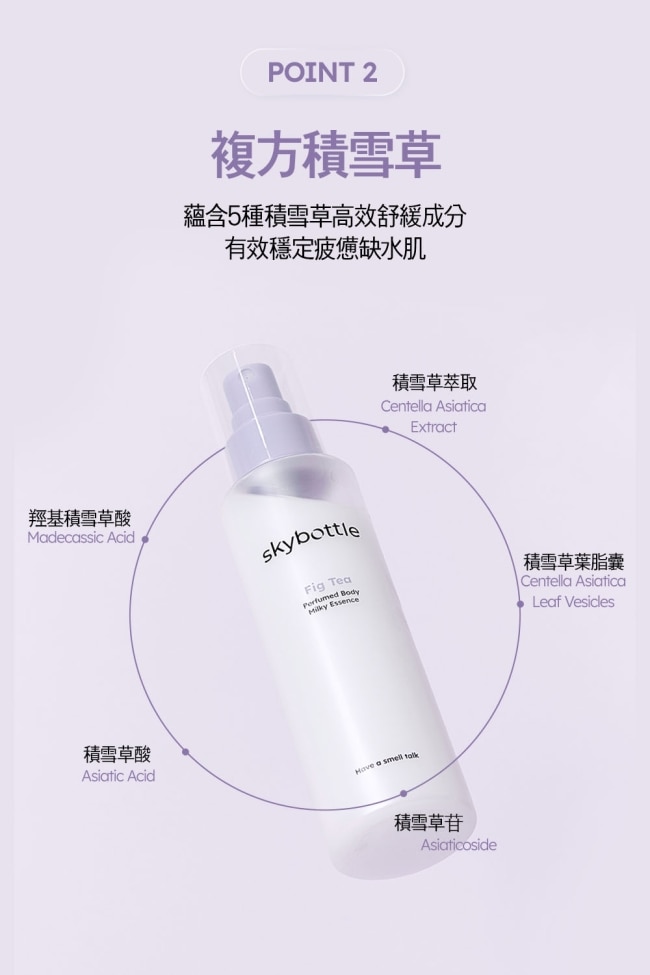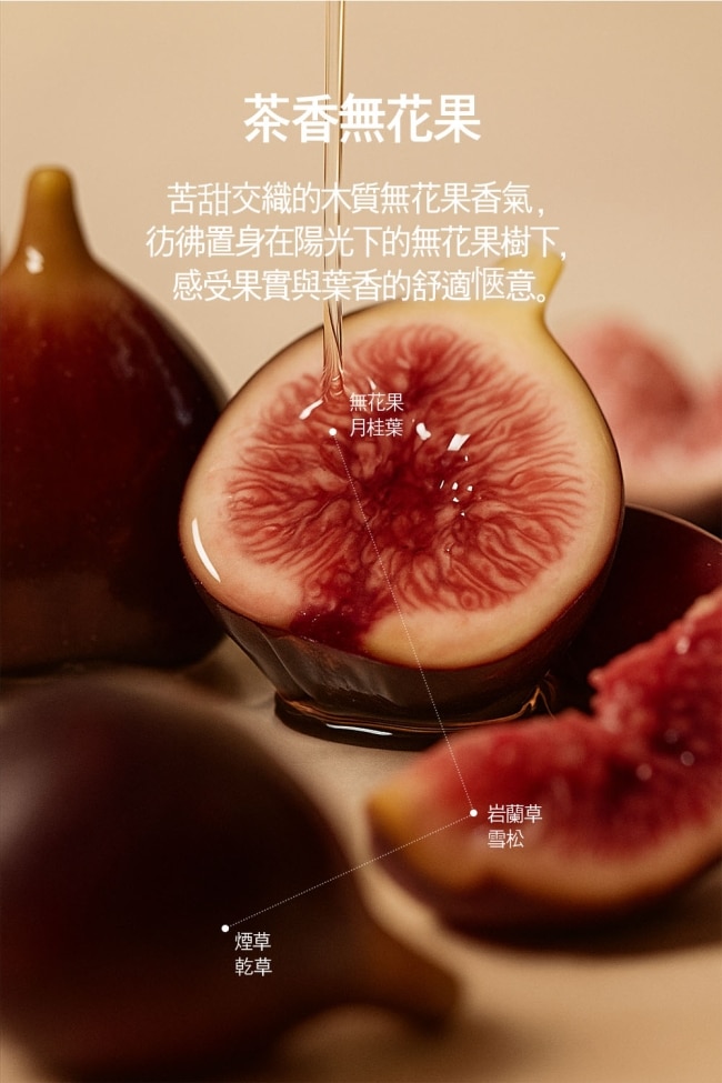 高質感香水級以無花果、雪松與煙草揉合成森林系木質調添加多重積雪草與神經醯胺提供舒緩保濕肌膚細緻清爽的噴霧劑型卻擁有身體乳的舒潤效果香氣尾韻持久駐留時刻散發自帶體香的恬靜木質氣息。