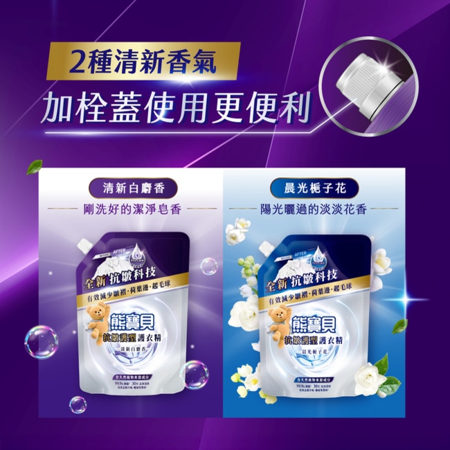 熊寶貝抗皺護型護衣精補充包 晨光梔子花 910G