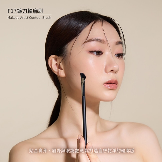沾取適量修容產品輕掃至需修飾部位創造深邃立體妝效。