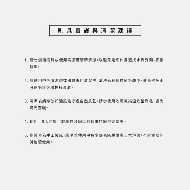 3. 請注意勿重壓導致刷毛 變形降低刷具壽命。