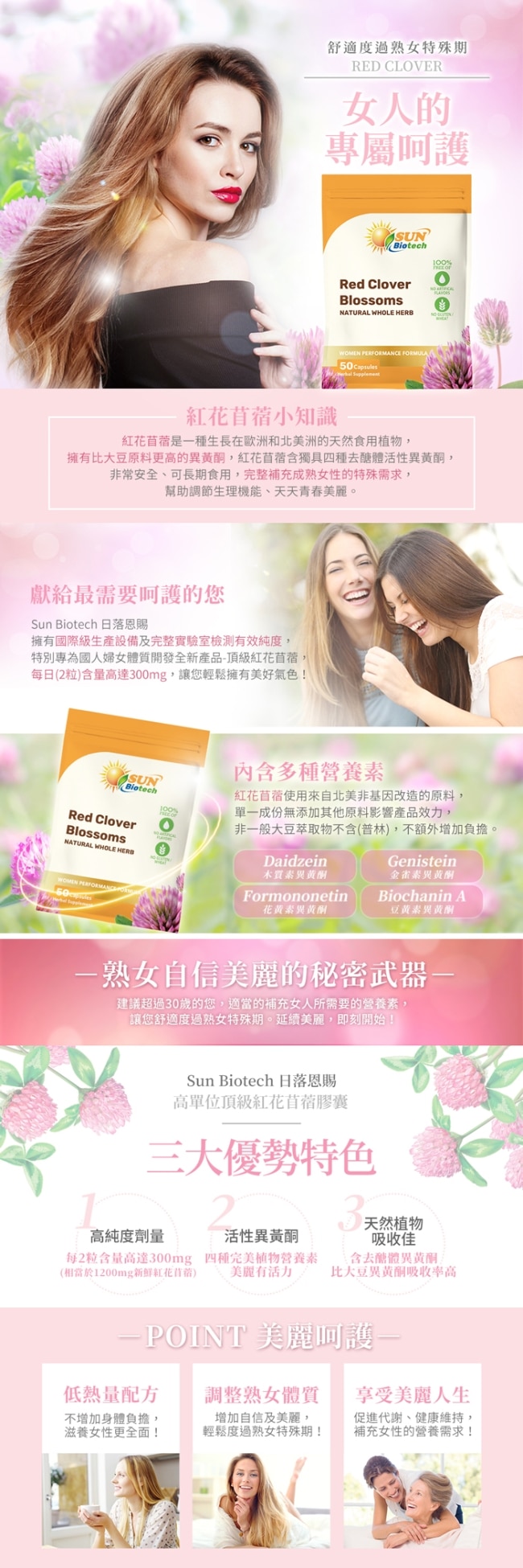 紅花苜蓿含獨具四種去醣體活性異黃酮 非常安全、可長期食用