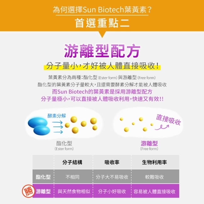 且游離型葉黃素的有效純度極高