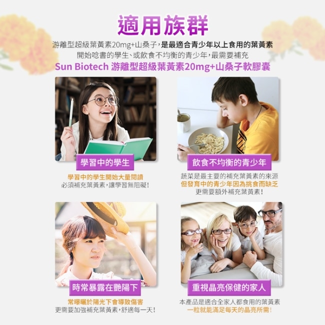 游離型超級葉黃素20mg+山桑子軟膠囊是適合全家大小食用的葉黃素