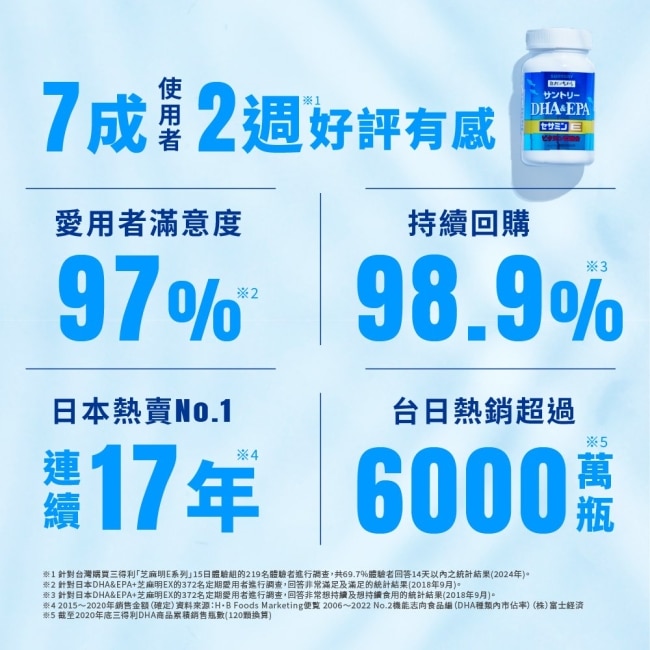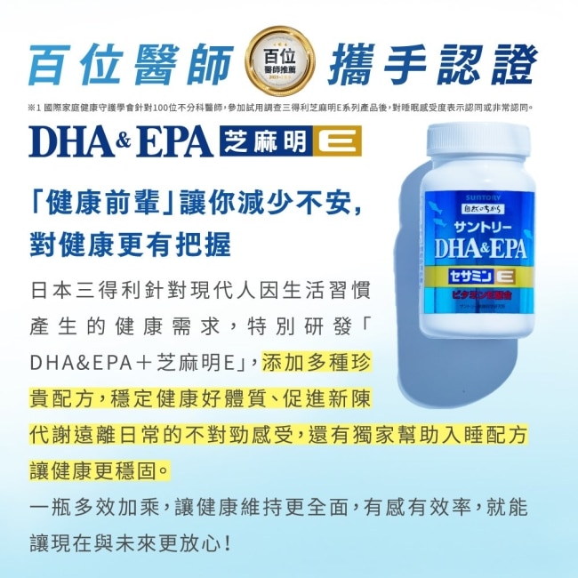 三得利魚油(DHA、EPA)+芝麻明E 120顆