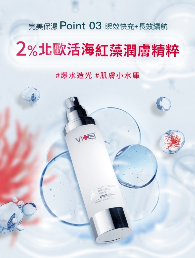 -爆水造光北歐活海紅藻潤膚精粹,搶救乾燥,呈現飽滿水亮。