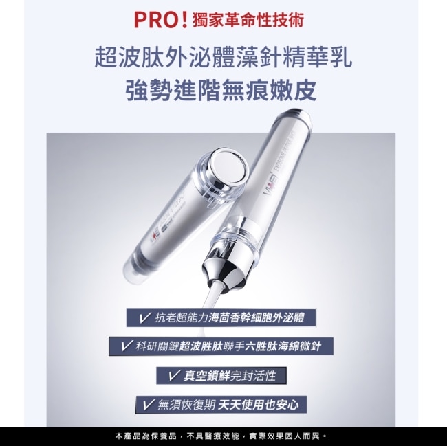 | 商品簡述 | 超波肽及海茴香幹細胞外泌體有效緊緻、撫紋偕同六胜肽藻針開啟微隙精準導入肌膚 |