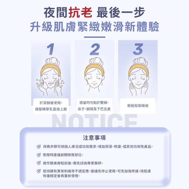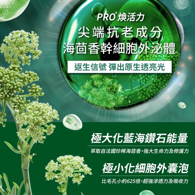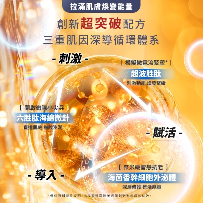 次世代緊塑科技超波肽及海茴香幹細胞外泌體有效緊緻、撫紋偕同六胜肽藻針開啟微隙精準導入活性由外到內展現煥然無痕新肌。