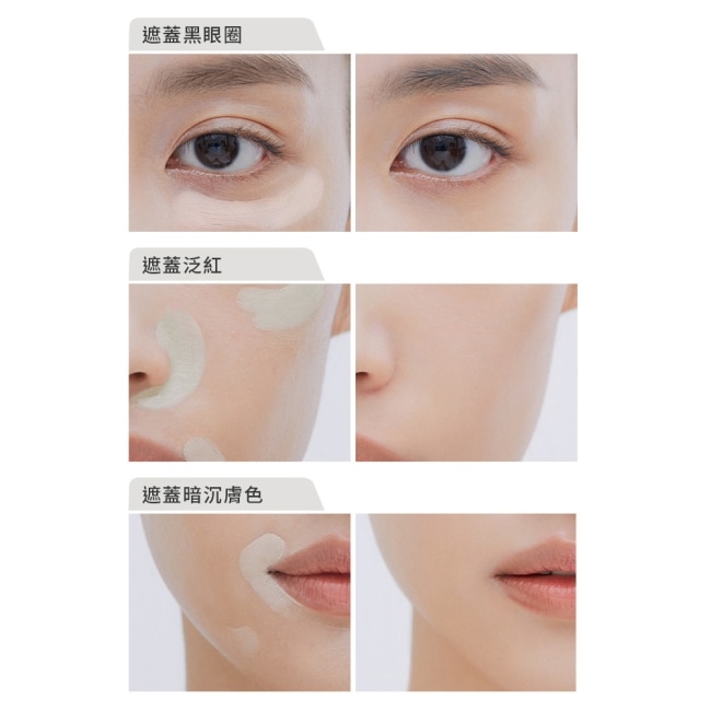 * 修飾小瑕疵、泛紅與色差呈現乾淨自然膚感。