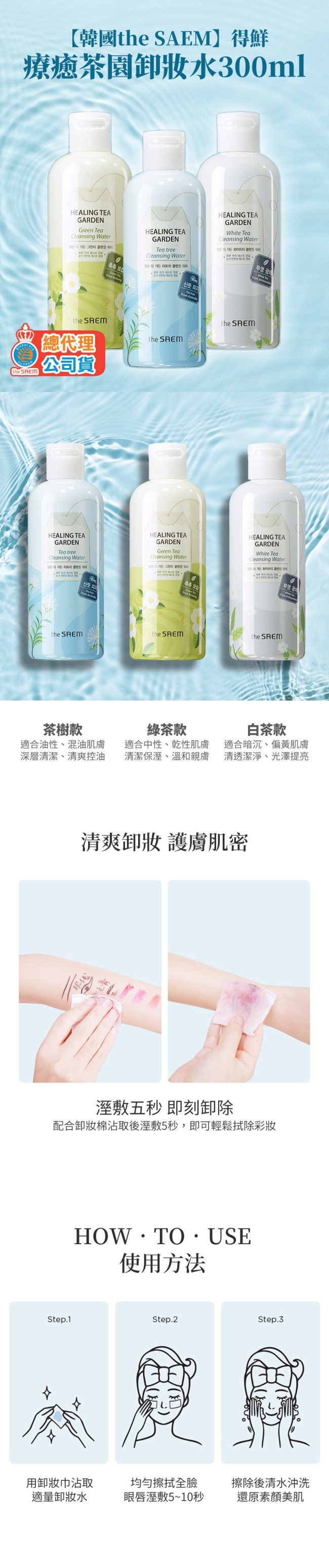 the SAEM得鮮 療癒茶園卸妝水300ml 綠茶